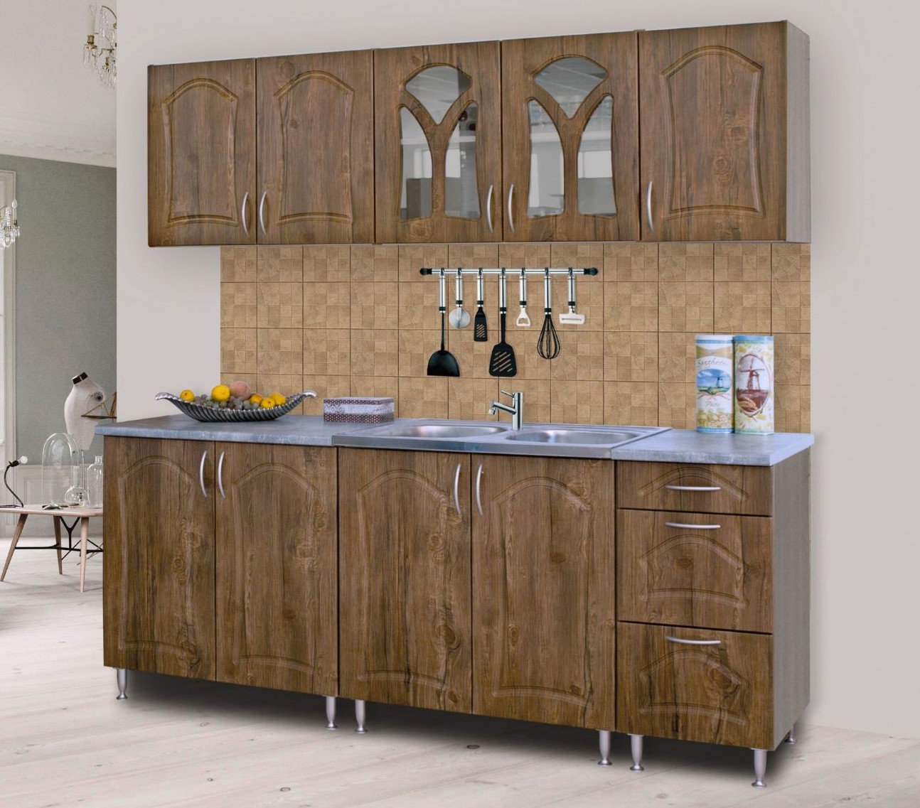 Flóra 200 cm széles konyhabútor 60 cm magas felső elemekkel. (Vtx)