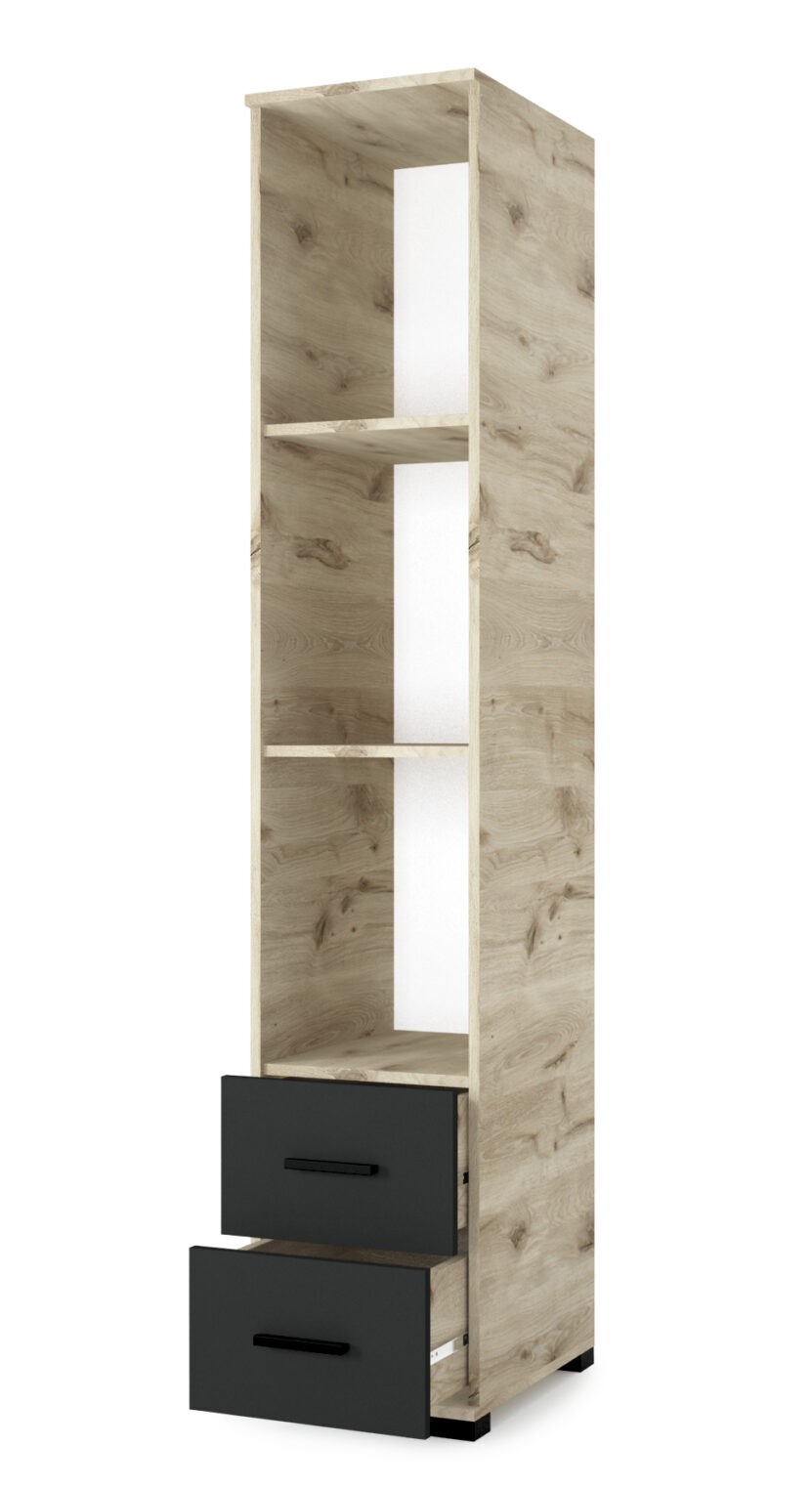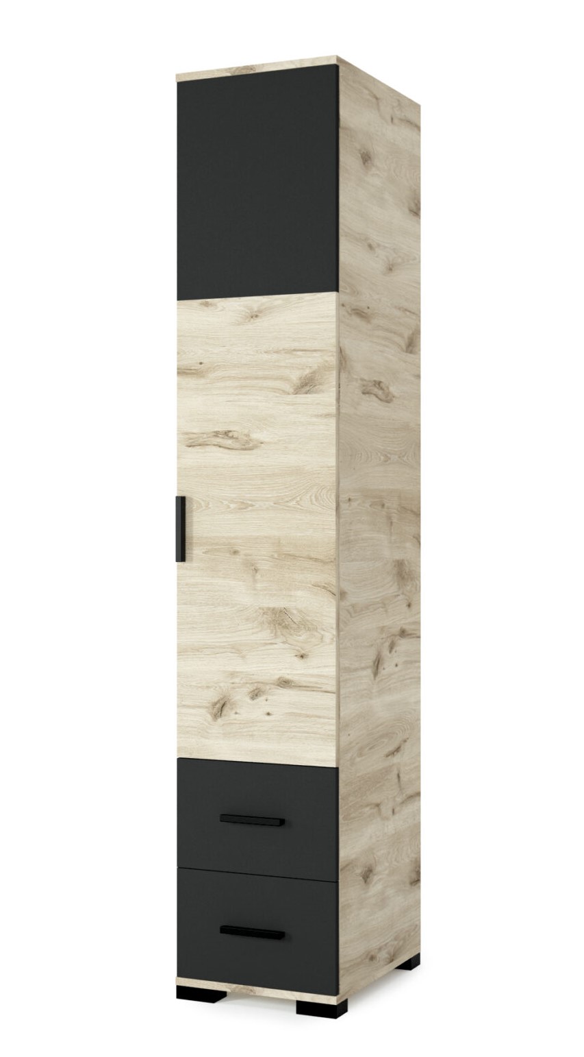A Galaxy gardrób 40 és 80 cm-es elemei kombinálásával mindenki összeállíthatja egyéni gardróbrendszerét saját igényei szerint. Sarokeleme segítségével a rendelkezésre álló tér maximálisan kihasználható. Canyon tölgy-rusztik fehér, matt fekete-viking tölgy színkombinációban kapható.