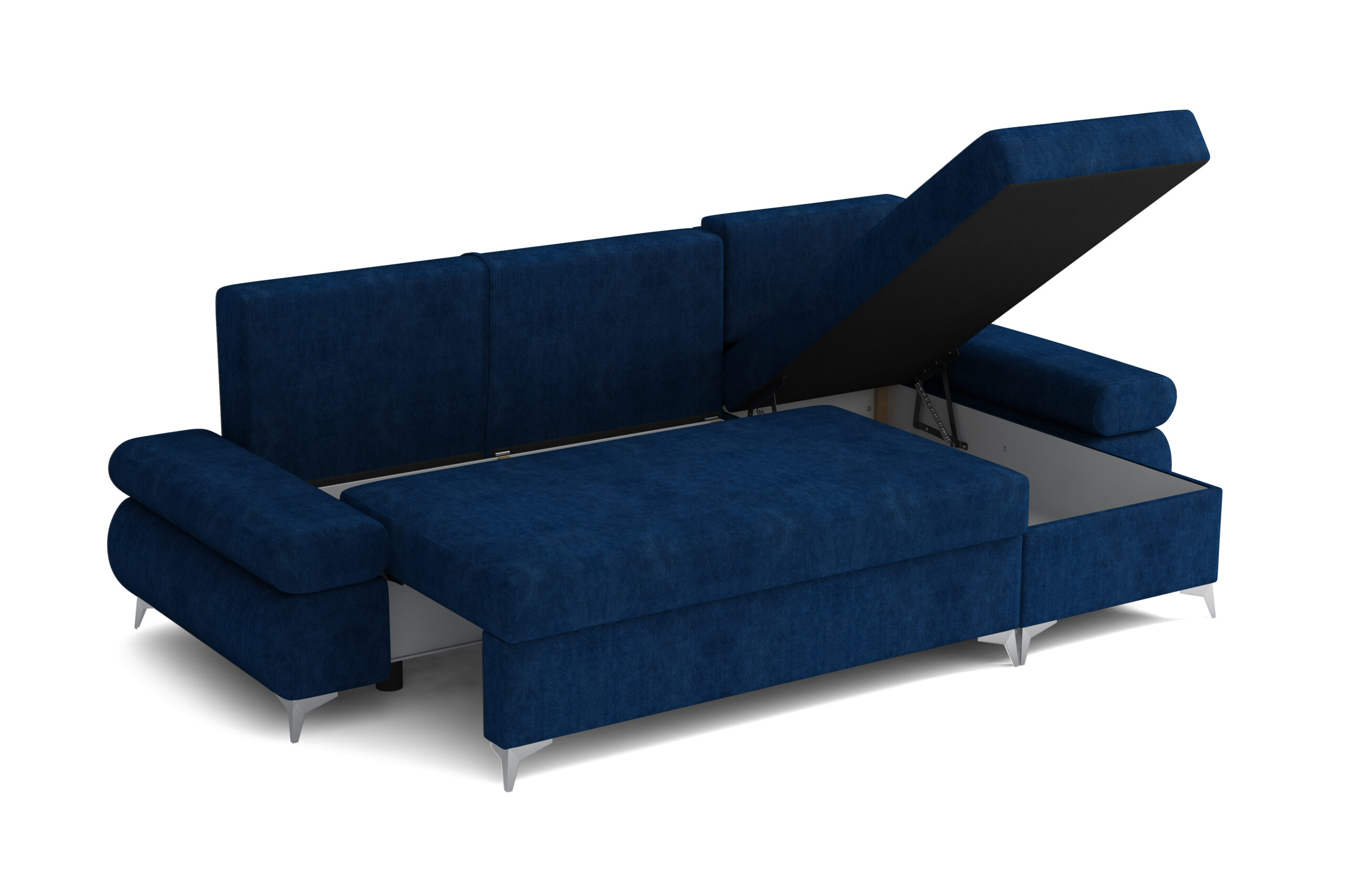 Automata kiemelőmechanikával ágyazható, dupla ágyneműtartós, rugós sarokülő garnitúra fém lábakkal és mozgatható karfákkal.Teljes mérete: 260 cm x 140 cmFekvőfelület mérete: 140 cm x 200 cm